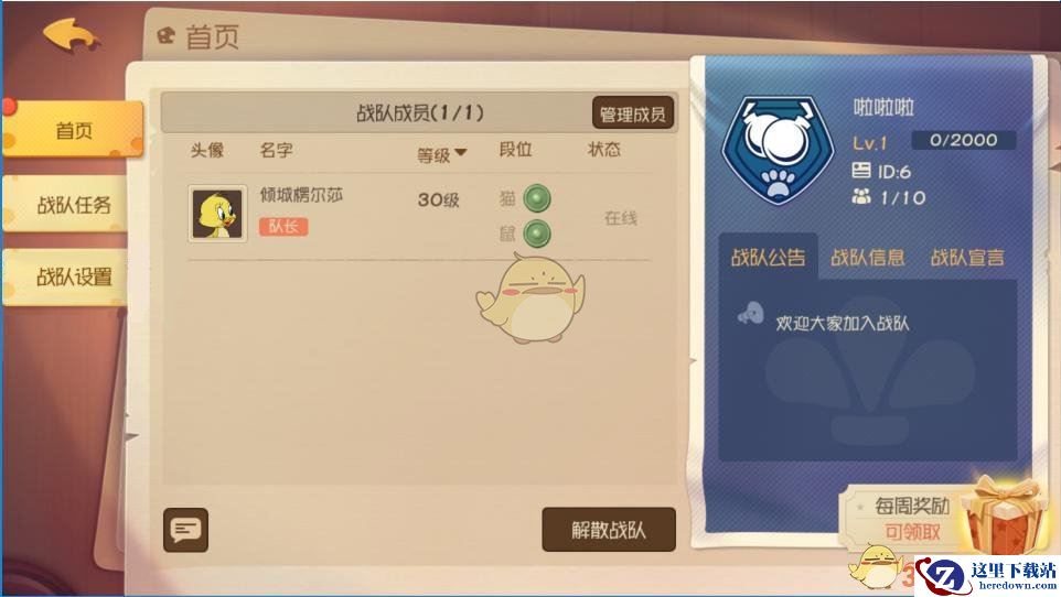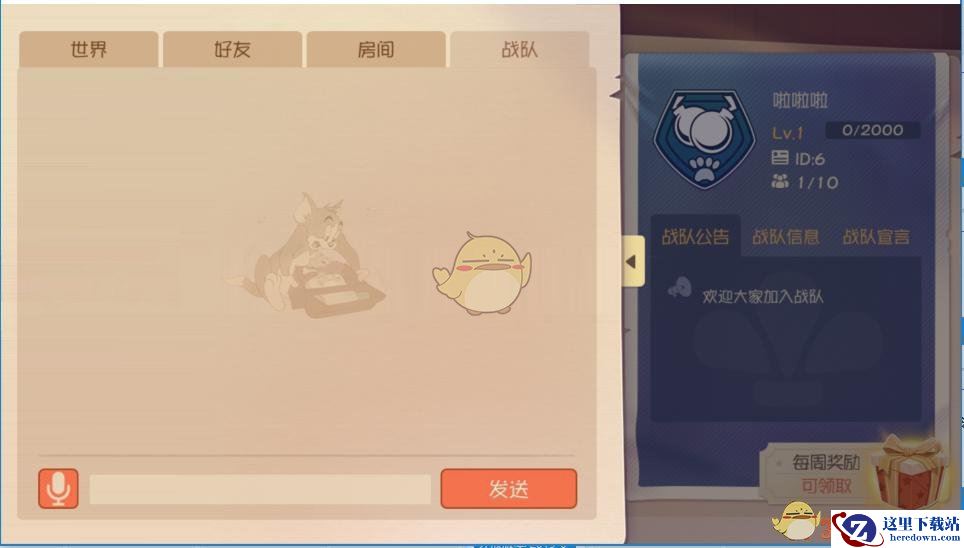 想学习某位角色的互动技巧?想了解知识卡的最优配置?想请教不同地图的战术打法?加入战队,与你的战队兄弟尽情探讨吧!今日,《猫和老鼠》手游战队系统正式上线,当玩家等级达到10级后,该系统就会解锁。在页面下方点击“战队”图标,即可进入战队系统。