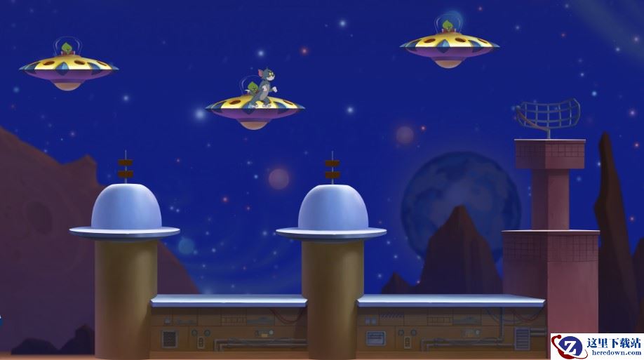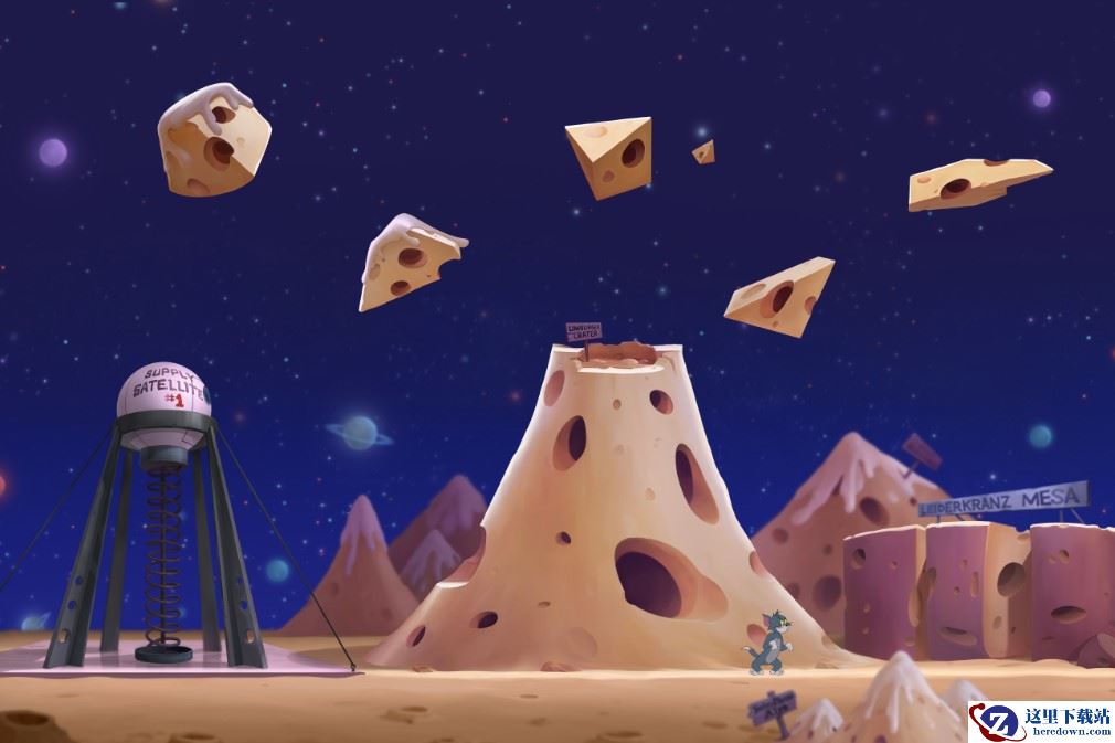 太空堡垒完美还原动画中的太空元素。在这里,玩家将再现动画中机器人挖掘奶酪的场景,也可以见到能帮助汤姆和杰瑞斗智斗勇的高科技设备。