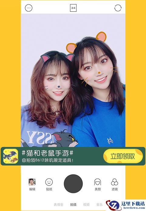 《猫和老鼠》手游携手B612邀请各位大小朋友前往体验定制贴纸。在B612咔叽,玩家可以进行各种风格的贴图拍照、录像、涂鸦,还能与好友分享美颜滤镜!