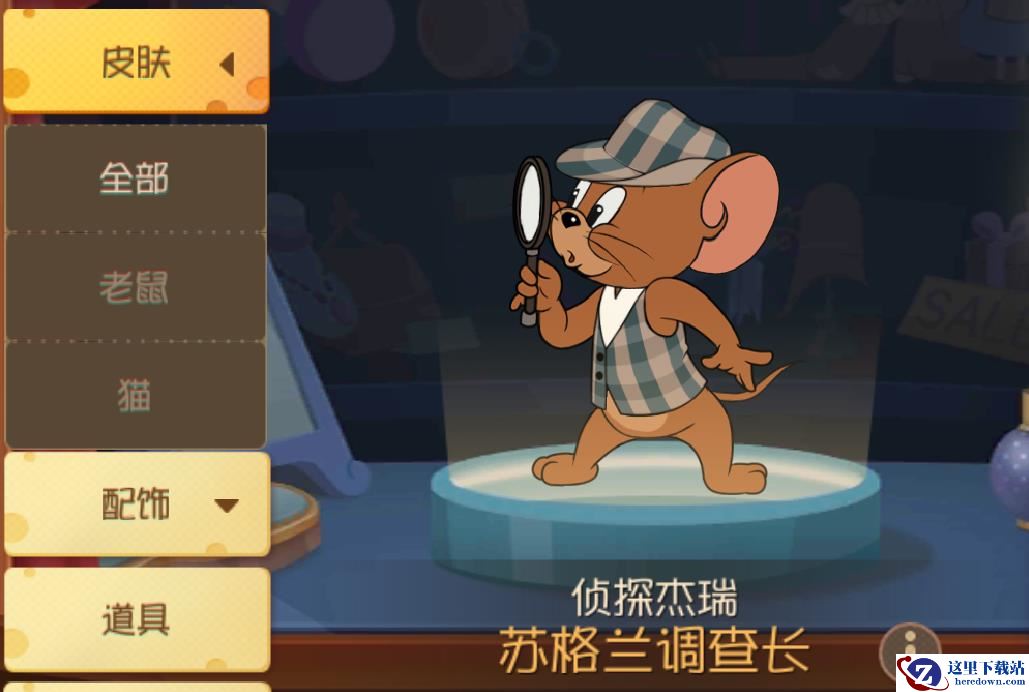 例如泰菲是游戏中最娇小的老鼠,其皮肤就主打可爱风,“圣诞甜心”皮肤中,泰菲扎着白色尿布,头戴圣诞帽,围着圣诞围巾,十分喜庆;“小红帽泳衣”皮肤中,尿布变成分粉红色,头上戴着粉红遮阳帽,胸前还系着粉红色领结,超级粉嫩。侦探杰瑞擅长破案,其皮肤便主打绅士风,一会变成“特调处专员”,一会化身“贝克街神探”,一会又摇身一变为“苏格兰调查长”,服饰搭配在变,但帽子、马甲和放大镜是永远不变的元素。