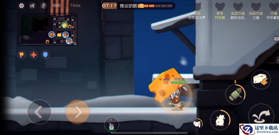 在多人联网模式下,“经典奶酪赛”是你不可错过的重头戏!在该玩法中,老鼠阵营玩家需要在10分钟内将5块奶酪推入5个鼠洞,并利用投掷道具将随机出现的墙缝砸成墙洞,然后从墙洞中逃脱,2名及以上老鼠阵营玩家顺利逃脱,即鼠方赢得胜利。而猫咪阵营玩家需要在10分钟内至少抓住3只老鼠,并将其绑上火箭成功放飞,方能获得胜利。