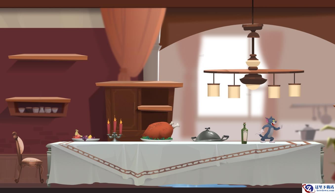 后花园里,斯派克的狗窝、翠儿的小木屋模样未改;客厅里,汤姆最爱的懒人沙发依旧温暖舒适;餐厅中,火鸡、水果、美酒一字排开格外诱人,火鸡还散发着热气,隔着屏幕仿佛都能闻到香味;厨房门,大开的冰箱里塞满了食物,是主人的疏忽,还是汤姆的陷阱呢?