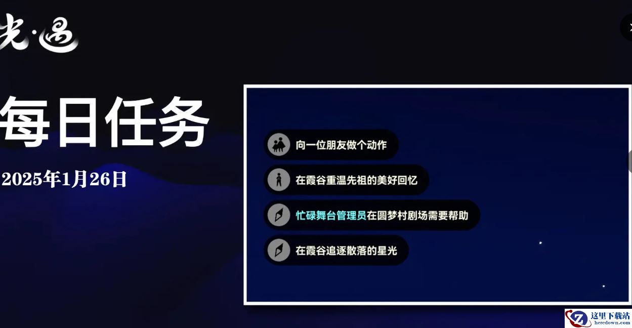 以上就是小编整理带来的《sky光遇》1月26日每日任务做法攻略,更多相关游戏攻略,请关注手游网!