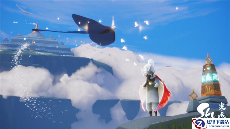 你将于与结识的同伴抖起斗篷在云端飞驰,漫游滑行在霞谷之上,看尽云国美景,一同在爱与光的世界中冒险。同时,有些关卡是需要玩家同心协力才能解开,点亮沿途的蜡烛来收集动作,感悟先祖的情感和故事,一同解开天空王国覆灭的秘密!