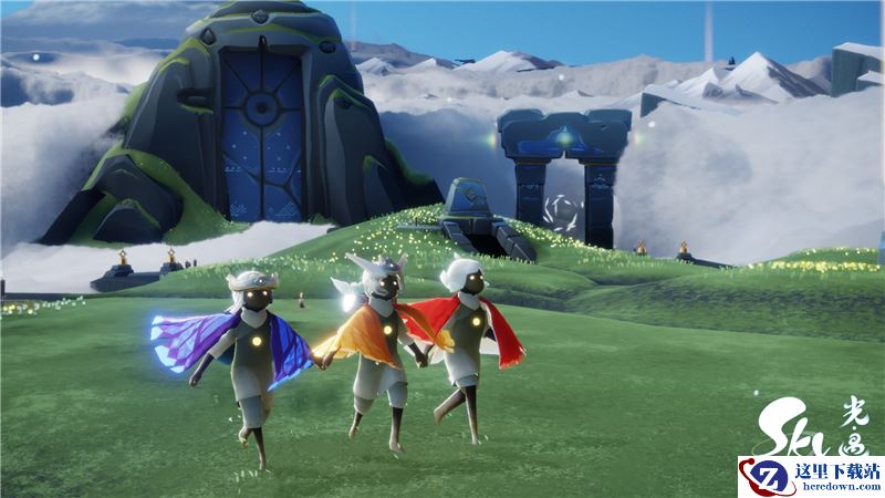 完成新手教程后,玩家将被光明点亮,化身天空王国的“光之后裔”开启旅途。跟随白鸟的指引朝着远处飞去,便能到达游戏的“出发大厅”——空巢。蓝天白云在盈盈绿草之上倍显和暖,这里也是玩家们最常聚集的地方。除了能在空巢通往其他不同的场景外,玩家还将在此与来自世界各地的好友牵手、拥抱、交谈……
