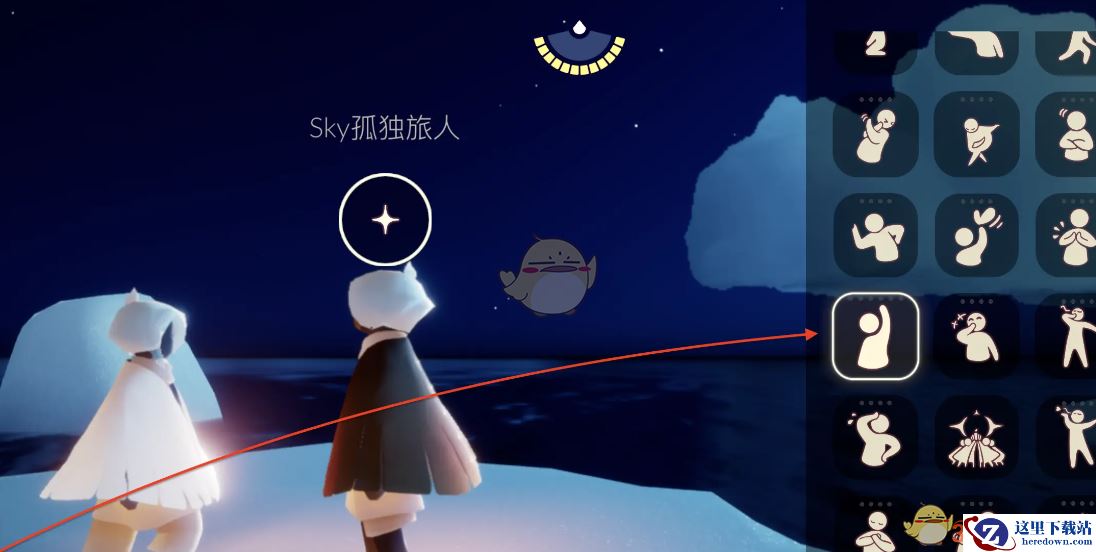 点击屏幕上方中间动 找到招手动作 面对好友 点击并完成招手即可