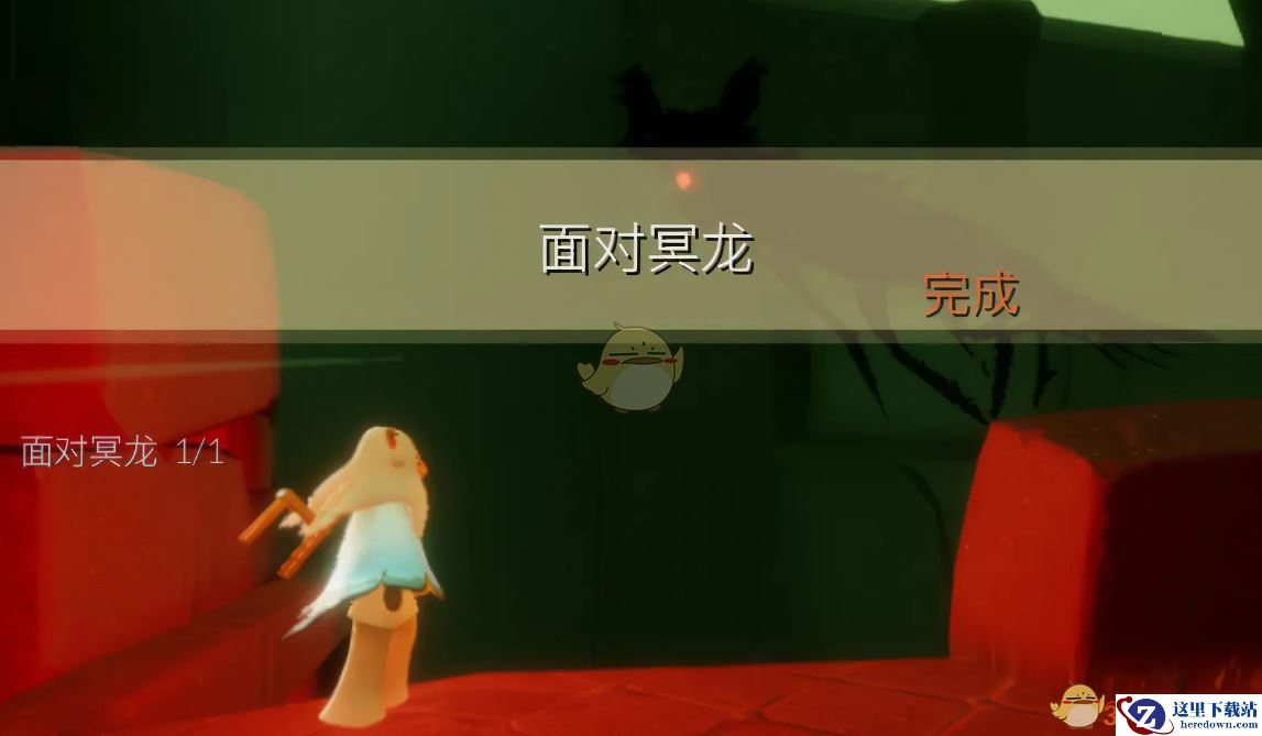 被冥龙锁定变成红光即可完成