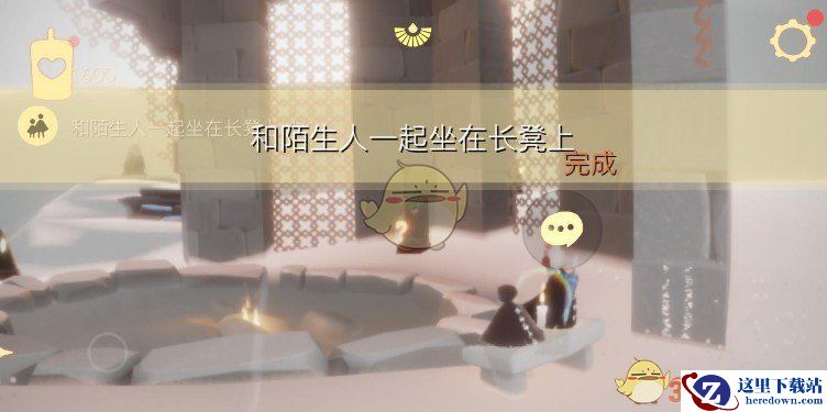 和陌生玩家一起坐在石凳上即可完成