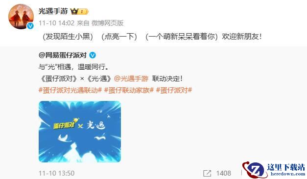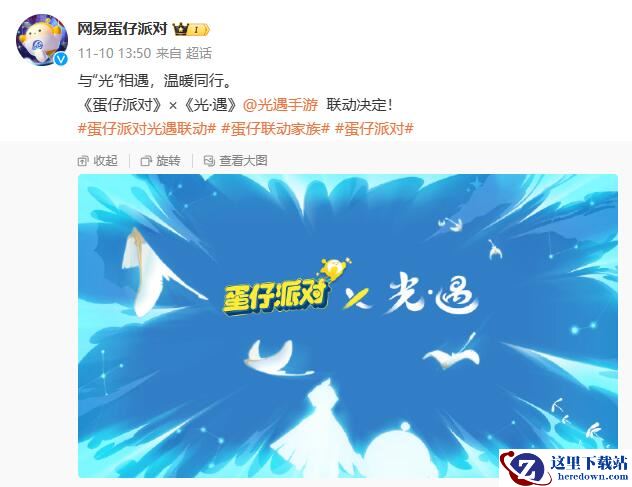 1、在11月10日的下午13:50蛋仔派对宣布了与光遇进行联动的消息;