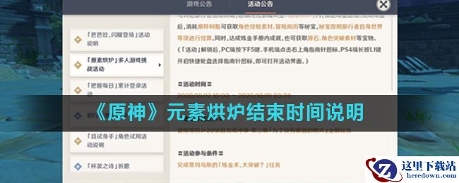 《原神》游戏中元素烘炉什么时候结束?元素烘炉是最近游戏中推出的活动,这个活动需要玩家联机组队挑战,收益非常的丰厚,很多玩家表示想知道这个活动的具体结束时间,那么接下来小编为大家带来《原神》元素烘炉结束时间说明,一起来看看吧。