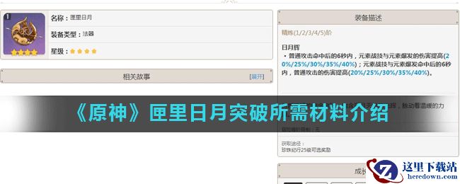 《原神》游戏中匣里日月突破需要哪些材料?随着武器的突破加成效果也会有所提升,当然战力也会有所提升,其中匣里日月突破材料很多小伙伴不知道,那么接下来小编为大家带来《原神》匣里日月突破所需材料介绍,一起来看看吧。