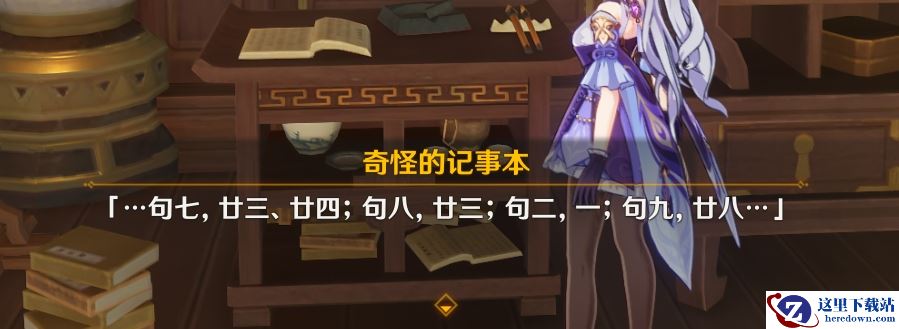 1、游戏中在凝光办公室门口有一个奇怪的记事本。