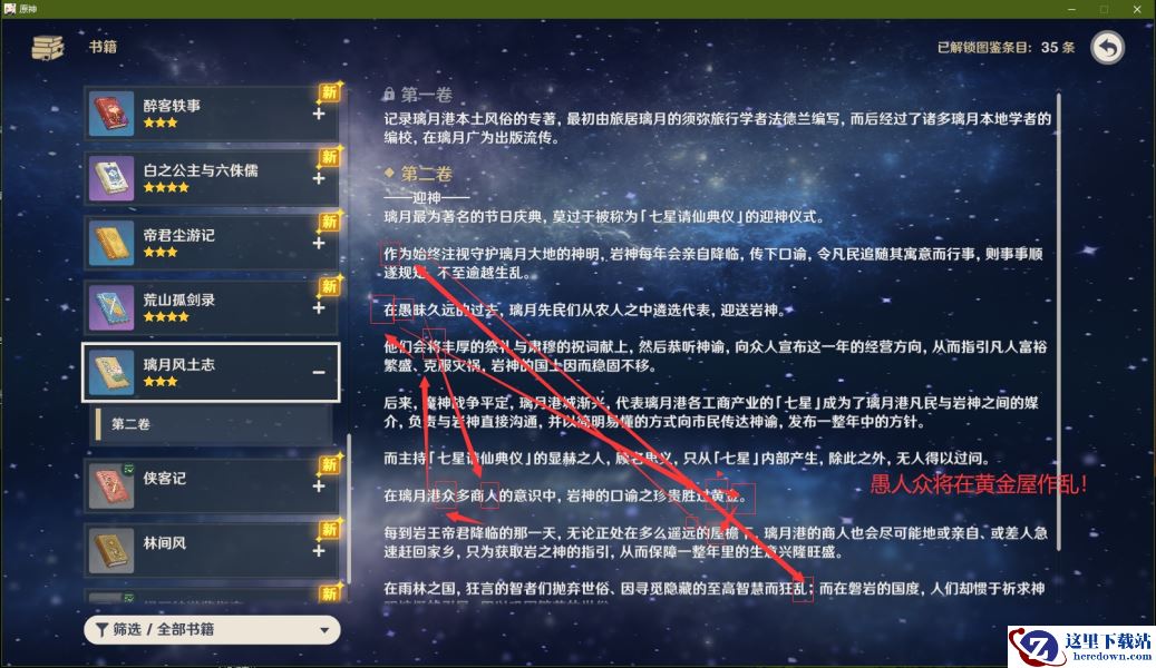 4、我们可以根据凝光桌子上的《璃月风土志。第二期》进行破译。
