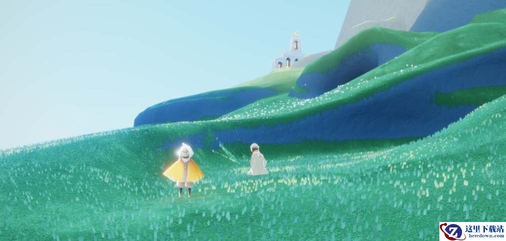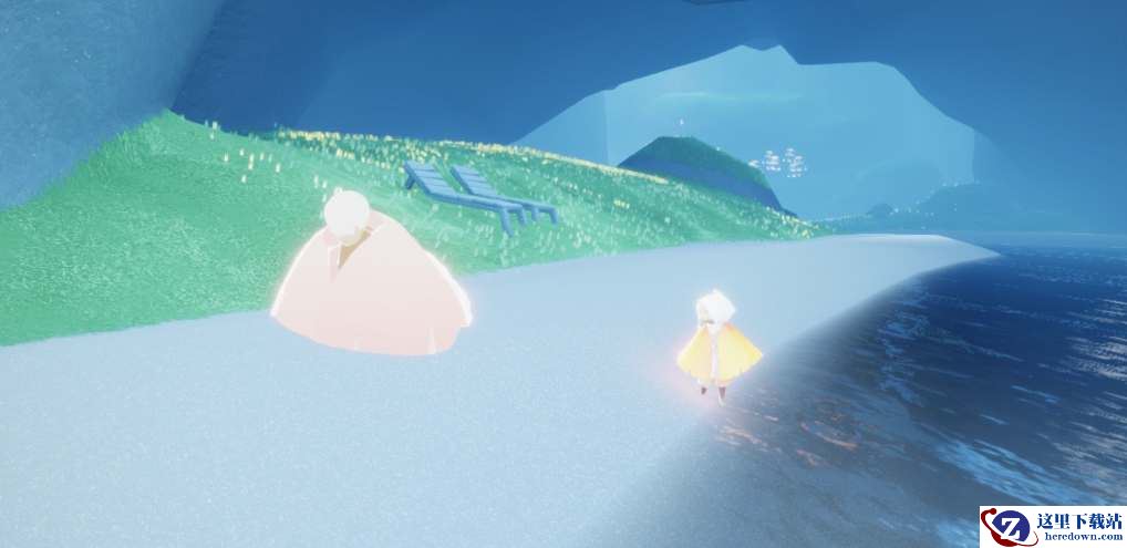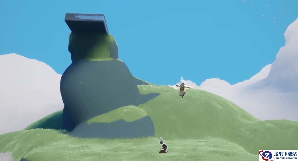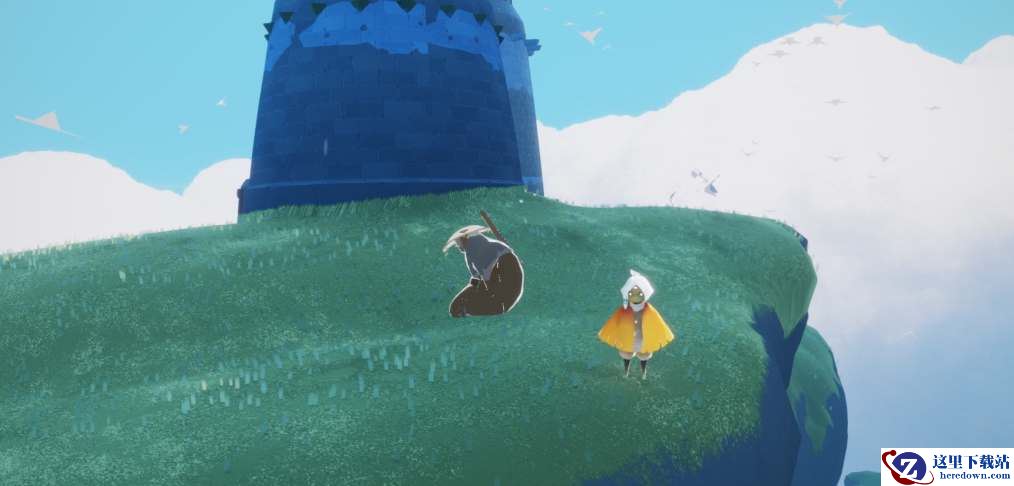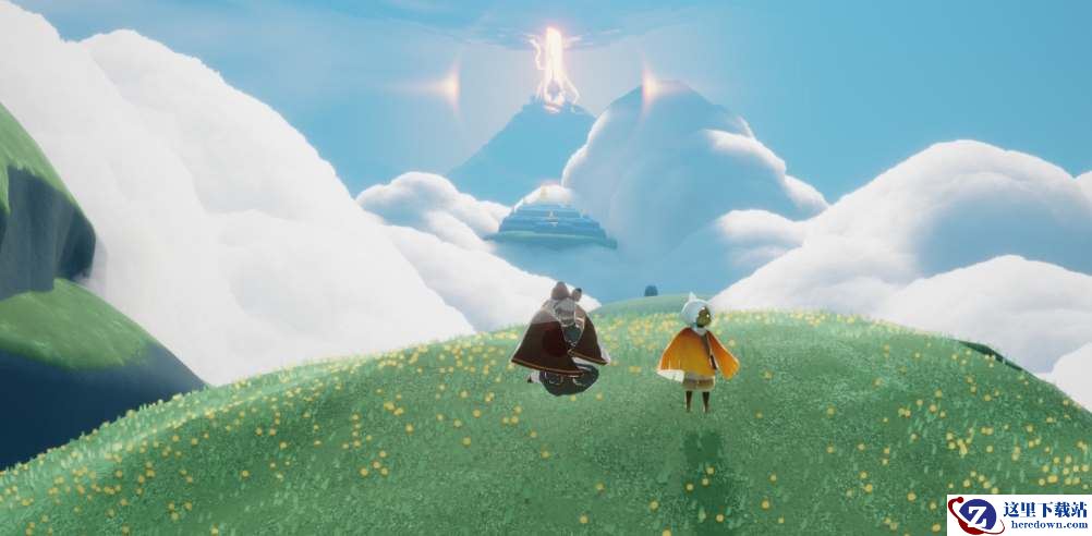 4、在浮岛的灯塔的下面,玩家能够在这里找到有着击掌动作的先祖。