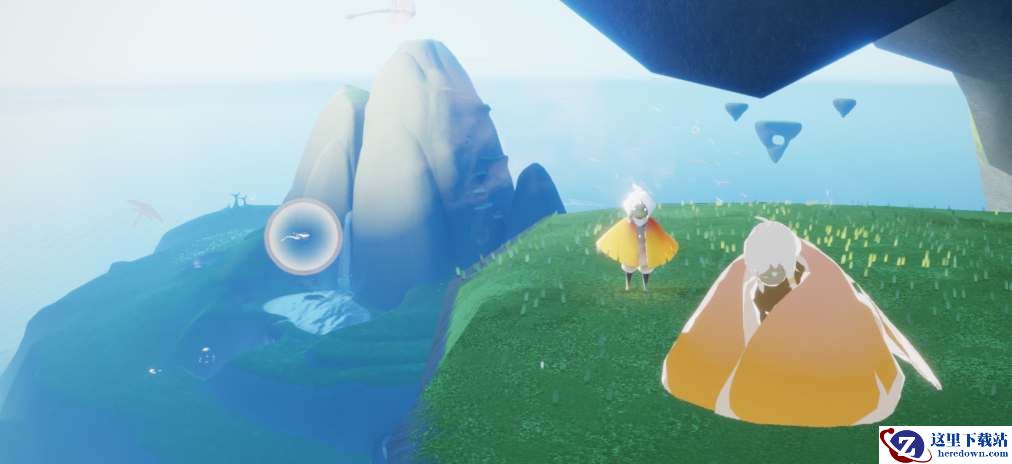 5、通过云洞玩家能够进入圣岛,然后在左边的浮岛上面能够找到有着站姿动作的先祖。