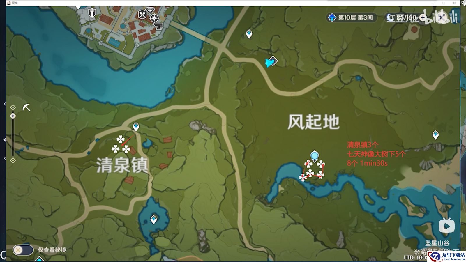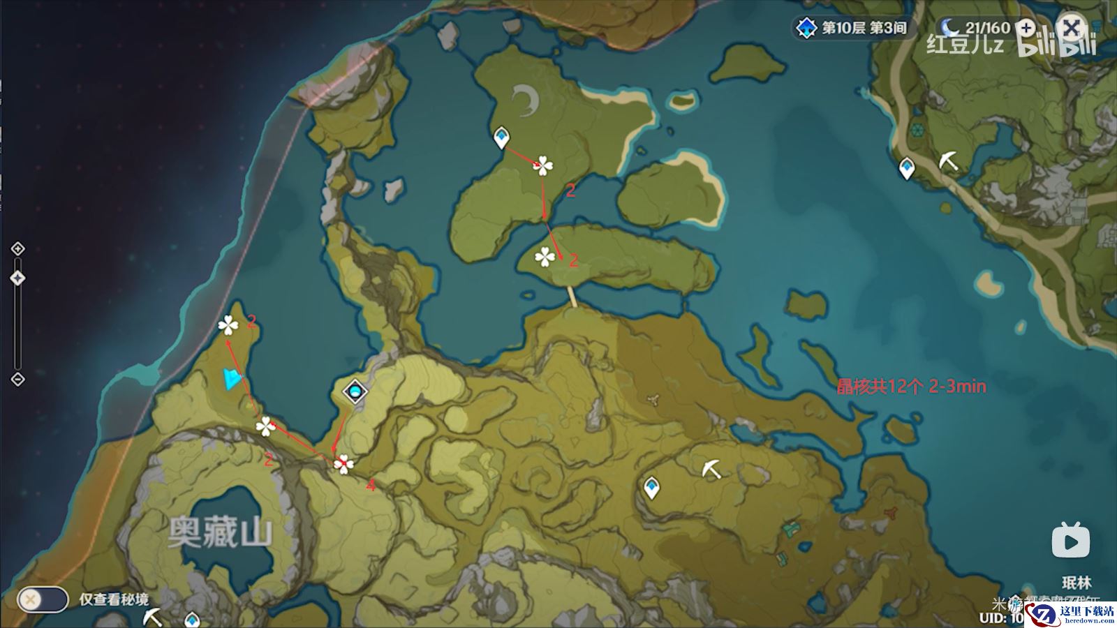路线1:12个晶核收集点