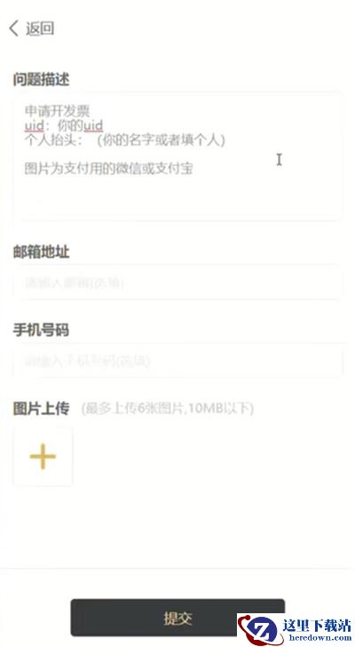 反馈的内容就写要求开发票就行(不嫌麻烦的可以特意声明要求纸质发票),同时在下面的图片中附上自己的充值消费记录与订单号,然后留下抬头(写名字或者只写个人两个字也可以)和邮箱地址即可。