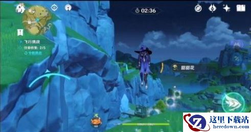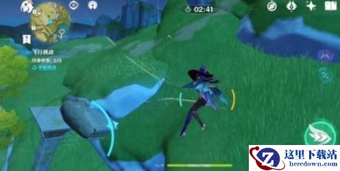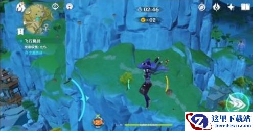 2、拿到第二个纹章后急速下落至山崖平台,向左前方前进并脱离山崖;