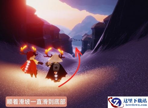 4、偷窥邮差先祖在山脚下面,先祖需要点燃激活,点燃之后跟着先祖在溜冰场上跑一圈就可以了。