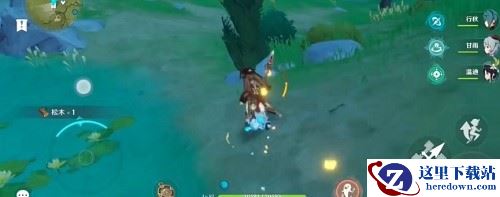 松木的外观如下图所示,与其他树木外观差别比较大很容易辨别。只要使用普通攻击击中树木,就会掉落木材了。