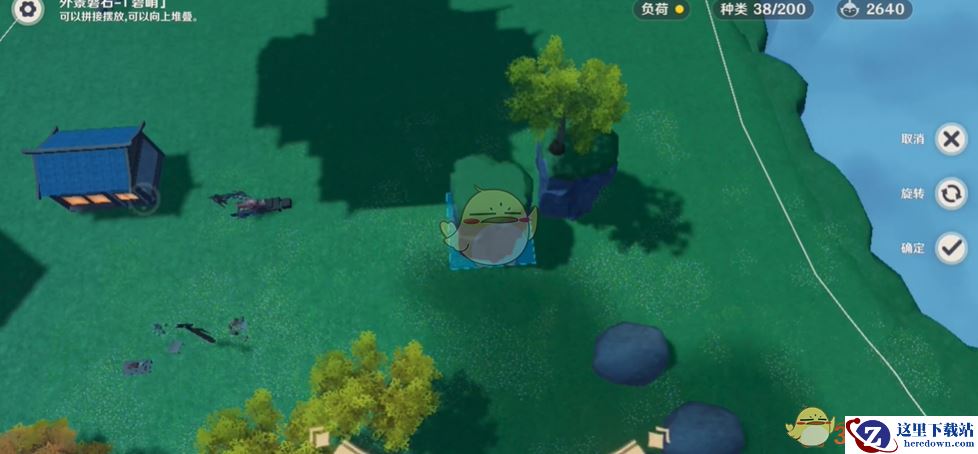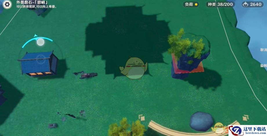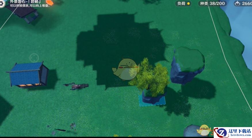 1、现在地面上放置一个岩石,然后在上面放个树。