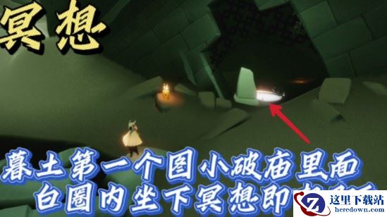 ④在暮土图一倒塌的破庙门口,进去一点就能找到冥想点。