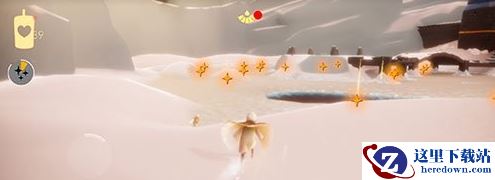 3、开启大门就可以看到小铃铛先祖,激活之后我们还需要收集这些橙色的光点。