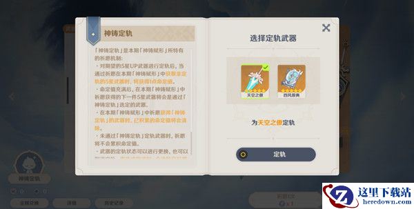 「神铸定轨」是「神铸赋形」所特有的祈愿机制,旅行者可以对期望获取的5星UP武器进行「定轨」。