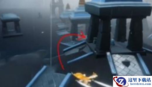 首先玩家需要来到雨林的终点图,就是有一个一个断桥的地方,如图所示。