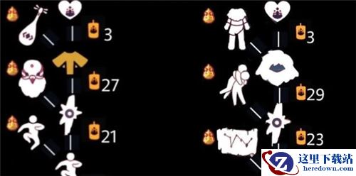 首先要氪一张季卡,然后梦想季先祖【解锁到最上面的节点】就是季节爱心,即:树状图最顶端的兑换物品。如上图所示,每个先祖的兑换树状图顶端,都有一颗爱心,用三根季节蜡烛就能兑换了。