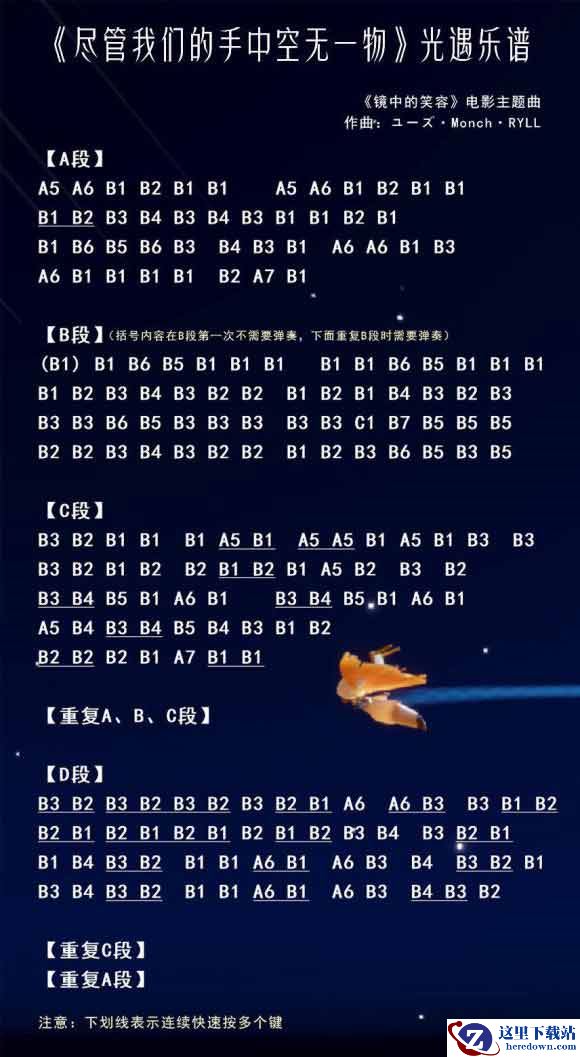 以上就是小编整理的关于《光遇》尽管我们的手中空无一物乐谱分享的全部内容,想获得更多相关游戏攻略可以关注手游网。