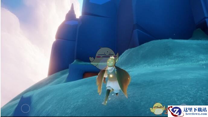 刚进入场景就先爬上眼前的巨大岩石(对你没有听错),我建议先进入洞中,后从岩石后方爬上,有一条岩石的脉络直通山顶,不许飞行,然后会得到一个光之翼(图中已经得到过)。