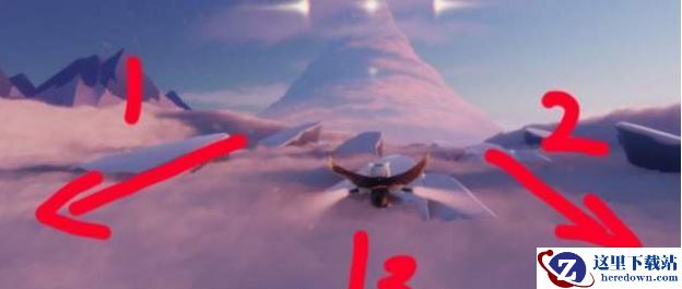 按照1、2的方向滑动,即可往两边飞行。按照3的方向滑动,则是往下坠落。当学会飞行技能之后,按住屏幕,即可向上提高飞行高度。