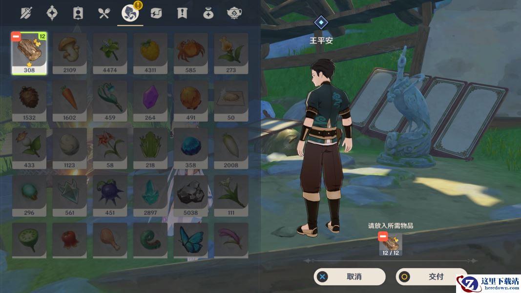 4、返回与王平安对话(需提交12根却砂木):接下来回到刚才王平安的点位,与他对话就好了。