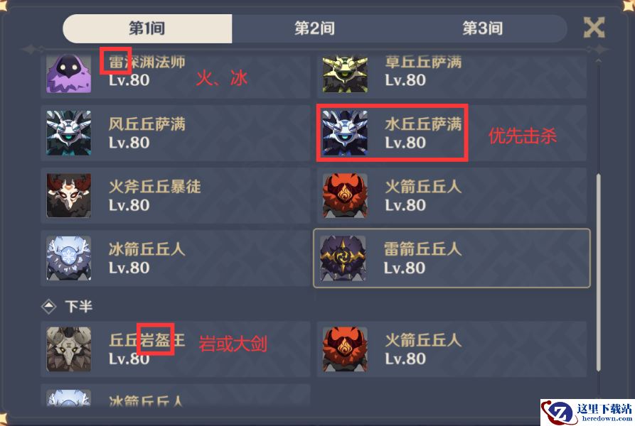 上半:火、冰、雷