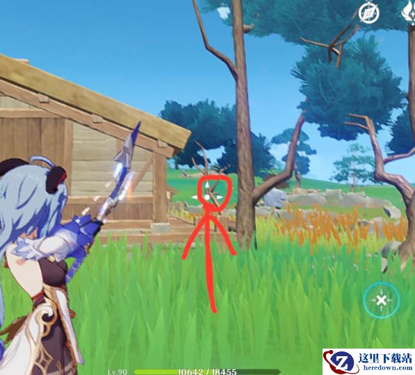 任务完成方法:站在原地,朝着图中圈出来的树的分叉口蓄力射击(无需蓄力满)连续射击,等到看到鸽子飞走了,过几秒会出现派蒙的提示对话,并提示事件已完成即可(完成后不需要角色走过去!)
