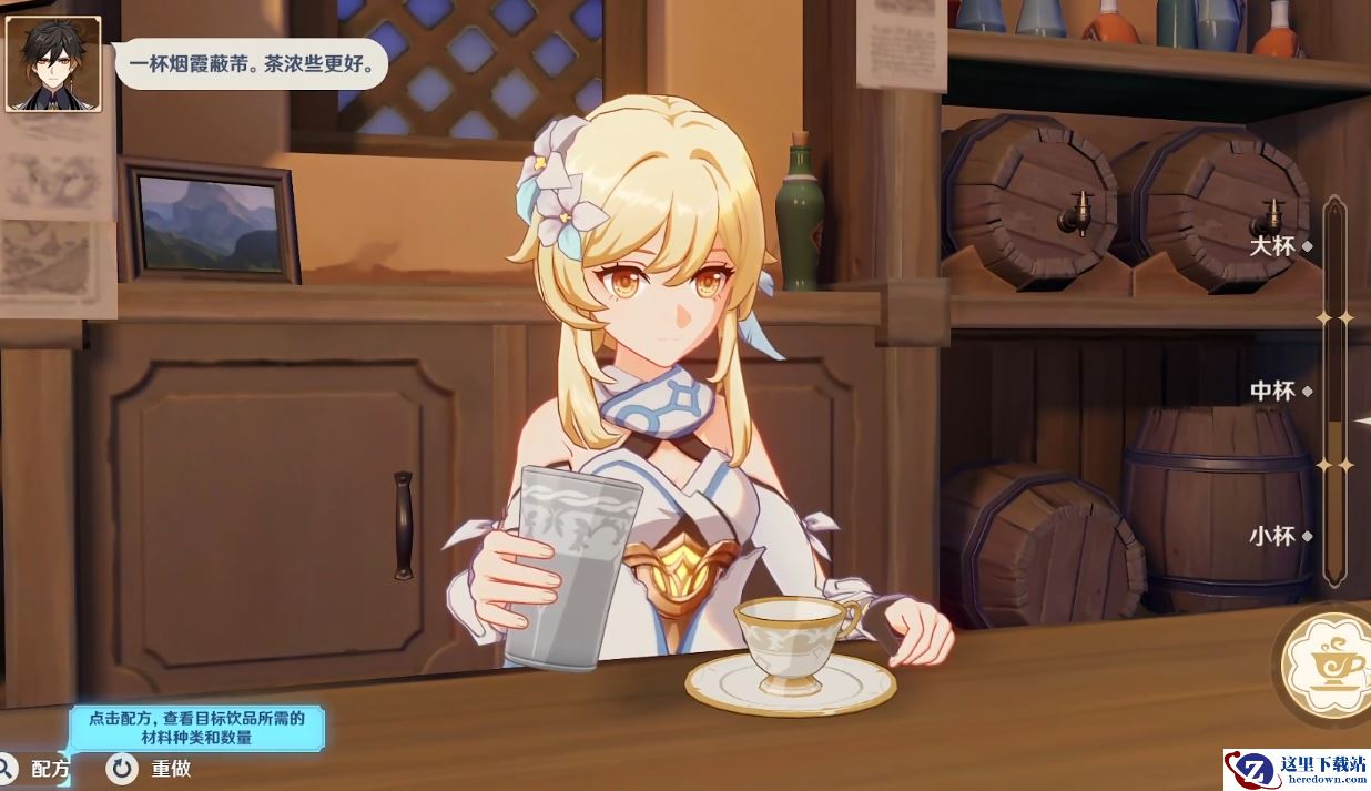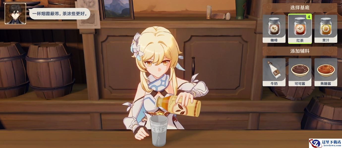 2、根据钟离的提示,我们加入三份红茶。然后进行QTE,最后随便选择一种杯量即可完成。