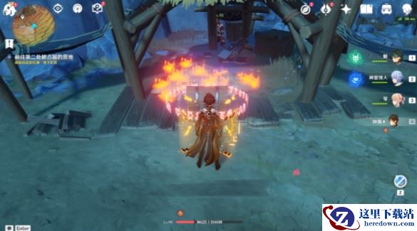 引爆旁边的炸药桶或用火元素角色,可以点燃帐篷下的茅草。