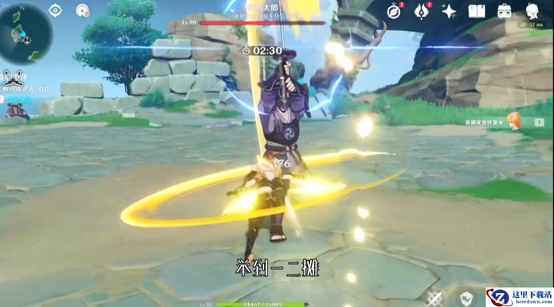 打他我们需要一直平a砍他打断他其他动作,然后注意他举刀动作,默念举刀,1,2,弹,然后平a,持续反复就可以了