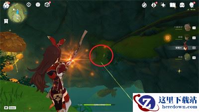 5、然后切换为安柏,击碎石柱解锁封印,这时水位会下降;