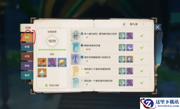 3、接着任务...完成。欸欸额别急着走啊。打开冒险之证,选择第二栏委托