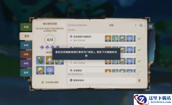 4、将任务地点换成须弥,就可以在第二天的凌晨4点来到须弥完成每日委托了。总的来说,原神冒险就要大步向前任务需要玩家完成须弥魔神任务,如此自然可以在第二日触发啦。