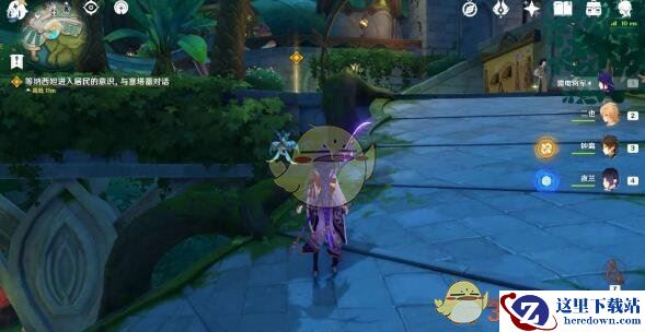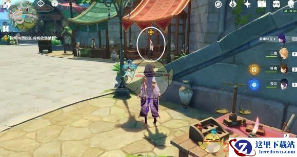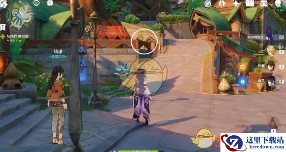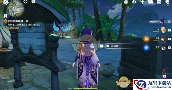 6、往地图的东北方向走,前往公告牌,与纳西妲对话。