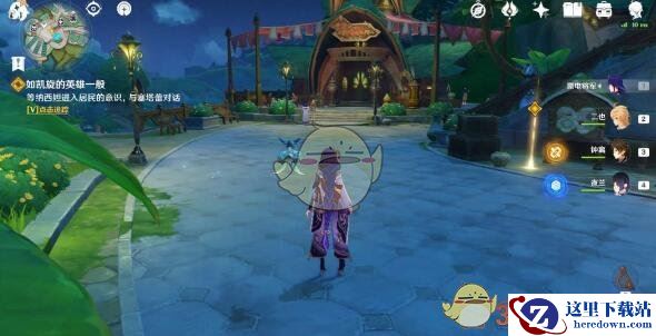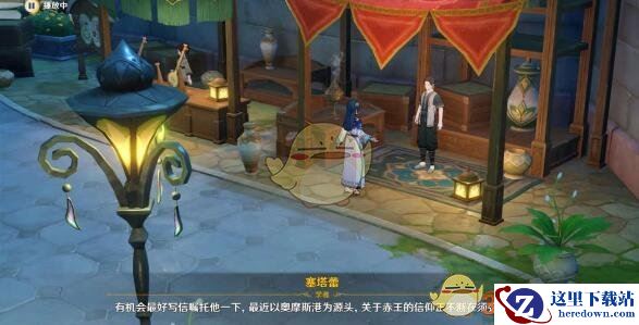 3、往地图的东南方向走,与娜比雅对话。