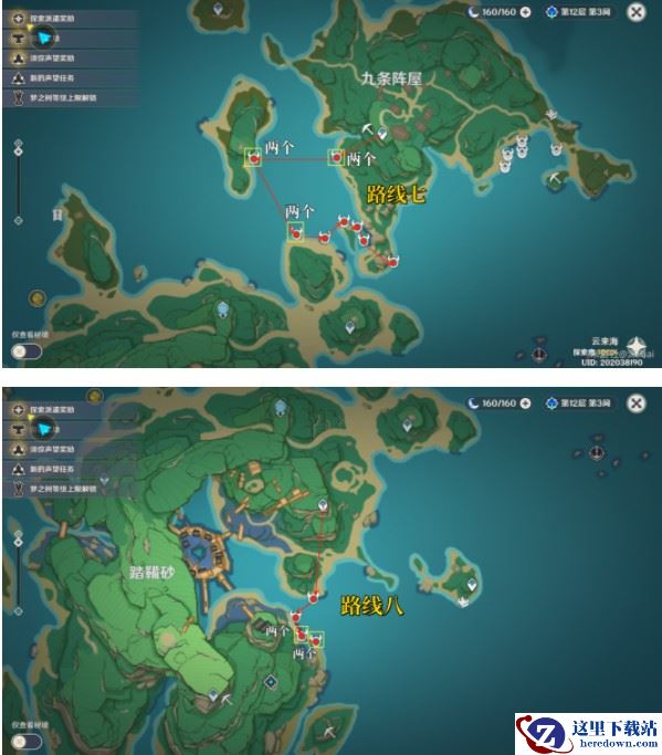 7.刀镡系列材料收集示意路线:
