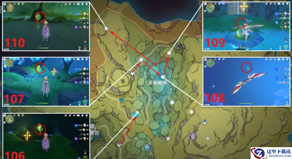 草神瞳在雨林地图中现共有110个,请完成森林书系列任务之后再开启寻找之旅。