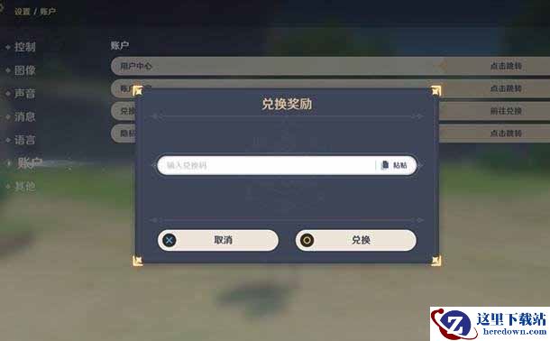打开原神,点击左上角的头像,点击左侧的设置图标,进入设置界面,点击账户,然后点击兑换码后面的【前往兑换】,输入兑换码,点击兑换就可以了。