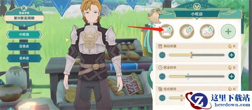 3、然后来到NPC这里和他对话,就可以打开【商铺】的经营页面。