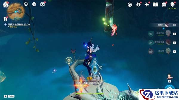 需要使用斯露莎收集红色四叶印,然后放置在草元素微粒路径上