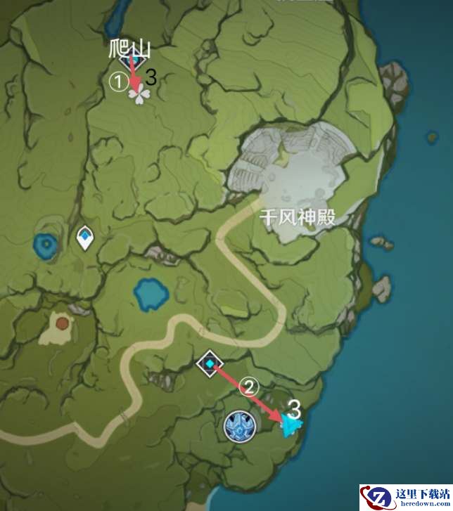 蒙德地区蒲公英籽的采集位置比较分散,下面为大家推荐几个比较容易收集的位置,推荐选择砂糖和鹿野院平藏进行收集,采集路线如下: